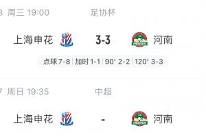 四天后再战!申花与河南鏖战120分钟+点球,本周日双方将联赛相遇